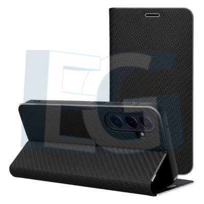 Kožené knižkové puzdro luna carbon pre Samsung A37 5G čierne